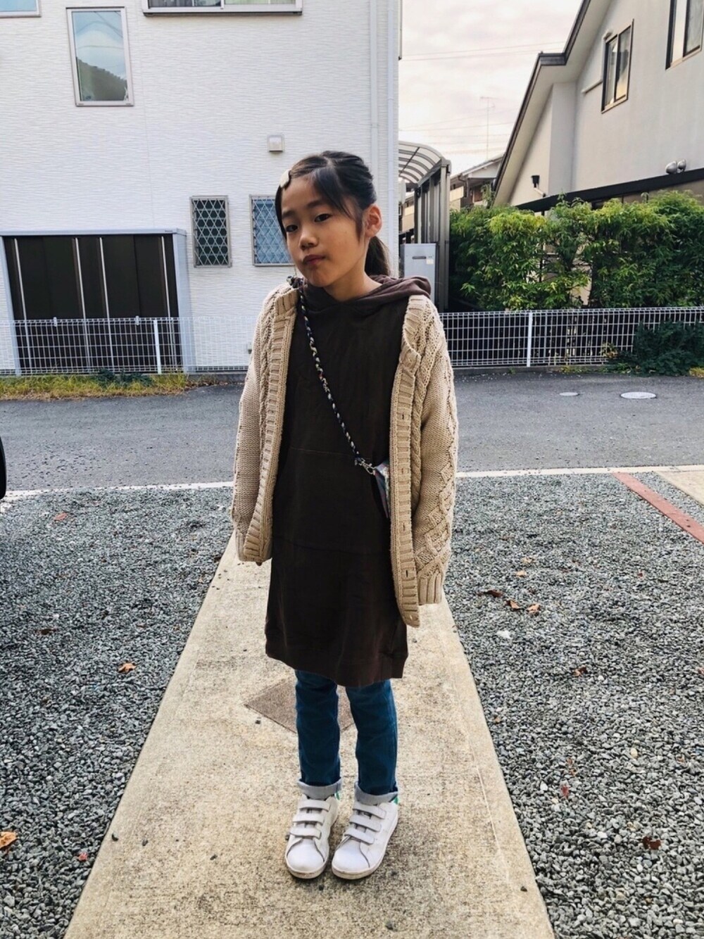 のぞいてくださってありがとうございまーす❤️ パーカーワンピの日ー🎵 これぞ通学ー😆💕 カーディガンからフード出すの…好きです❤️笑 そして小窓にはカジュアルが過ぎるBBA🤣笑 ちょっとキレイな感じになりたいのに…どんどんカジュアルが過ぎていくー😅笑笑