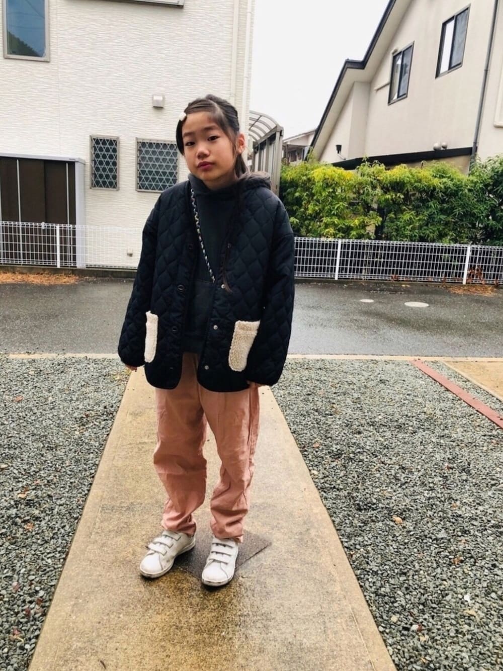 のぞいてくださってありがとうございまーす❤️ 通学すたーいる🎵 ピンクのパンツはGUのシェフパンツです❤️ GUのシェフパンツも好きで黒とギンガムも持ってます😆 小窓のBBAはなんだかガチャガチャ… いろんなものを盛り込みすぎました🤣笑