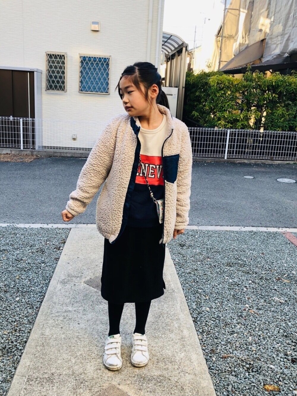 のぞいてくださってありがとうございまーす❤️ #もこもこアウター 今年通学に大活躍なブランシェスのアウター🎵 着やすいしお洗濯できるししわになったりもしないし最高でーす✨ スカートもスウェットも去年のー❤️ 今年もかわいいです😍💕 なんとなくBBAも似たようなもこもこコーデです💗