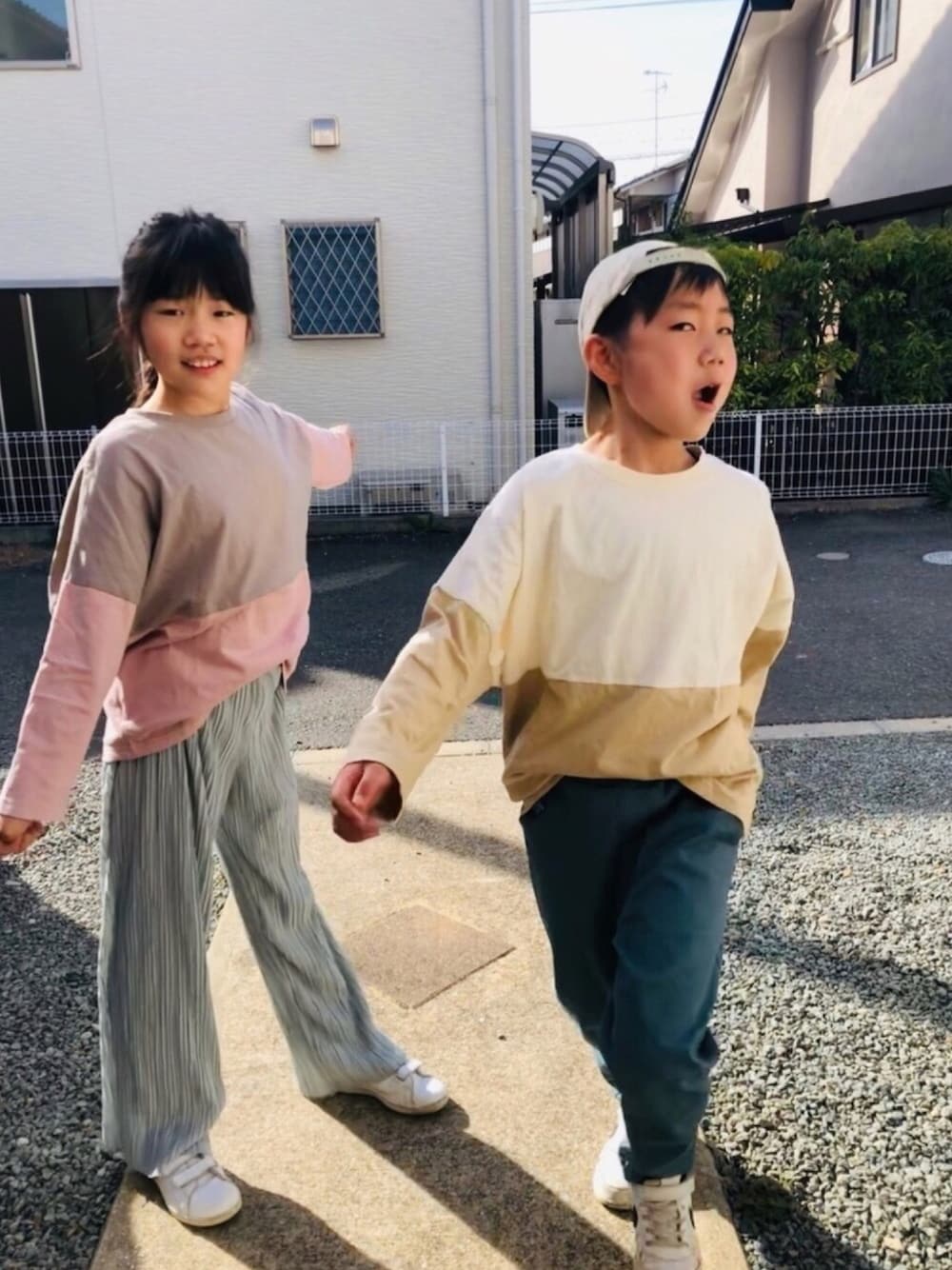 のぞいてくださってありがとうございまーす❤️ #淡色コーデ なんかクセ強い日🤣笑 そうたの顔に、後ろ姿のあやかの立ち方… クセツヨーーーっ🤣🤣🤣 色違いのブランシェスのトップス🎵 かわいい❤️ あやかのプリーツパンツもブランシェスさん💚 欲張って150買ったら長かったです🤣 ウエスト折って履いてます💗 いつかの爆買いデイに買ったやつです😆 最近ブランシェスさんも行ってないからなー…行ったらやばいだろうな😅笑