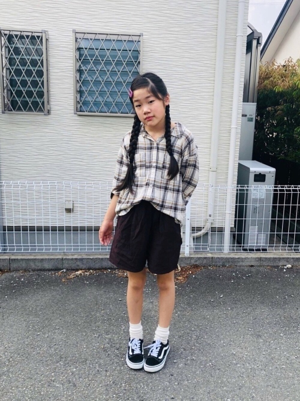 のぞいてくださってありがとうございまーす❤️ #ショーパン 今年もかわいいブランシェスのハーパン😆 そして今年もかわいいグローバルワークのチェックシャツ✨ くしゅっとくつ下にオースク🍀 上がりますーっ❤️
