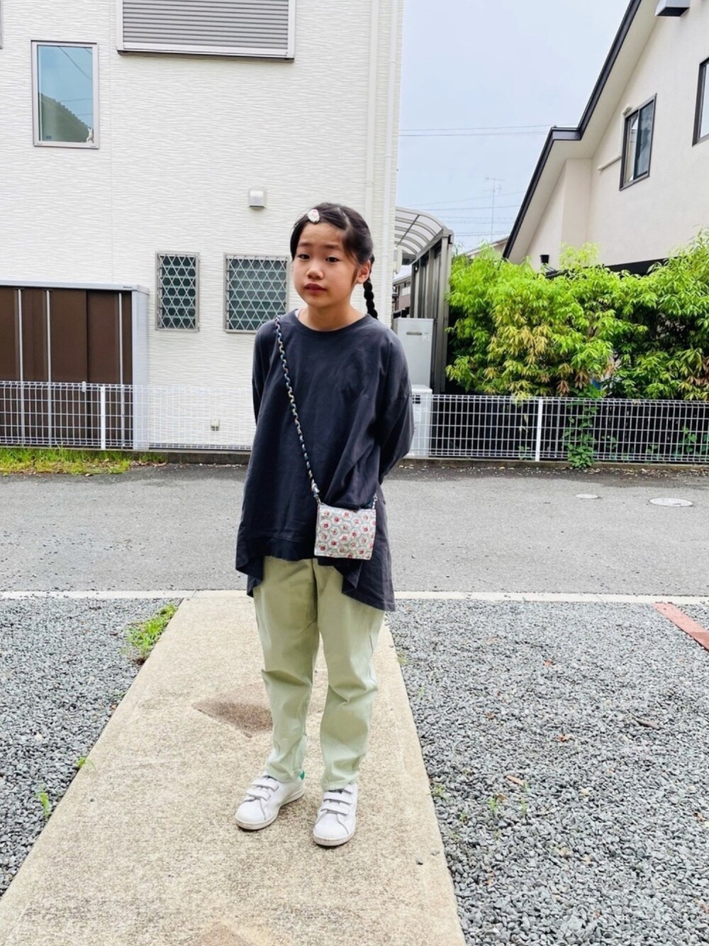 のぞいてくださってありがとうございまーす❤️ #パステルカラー お気に入りのパンツ💚 いい色ー😆💕 小窓のBBAはなんとなく色リンク🎵 りえちゃんからのプレゼントなトップスはほんと着やすくて大活躍ー✨
