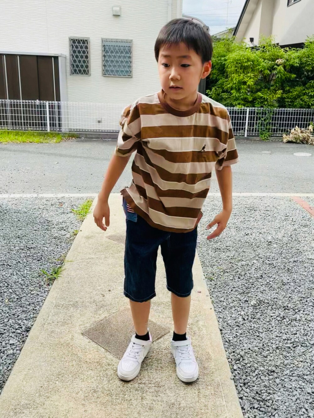 のぞいてくださってありがとうございまーす❤️ 通学すたーいる🎵 しましまかわいい😍💕 ブランシェスさんのデニムは大活躍なやつー✨ 使いやすすぎてめっちゃ履いてます🎵 7月もよろしくお願いしまーす❤️