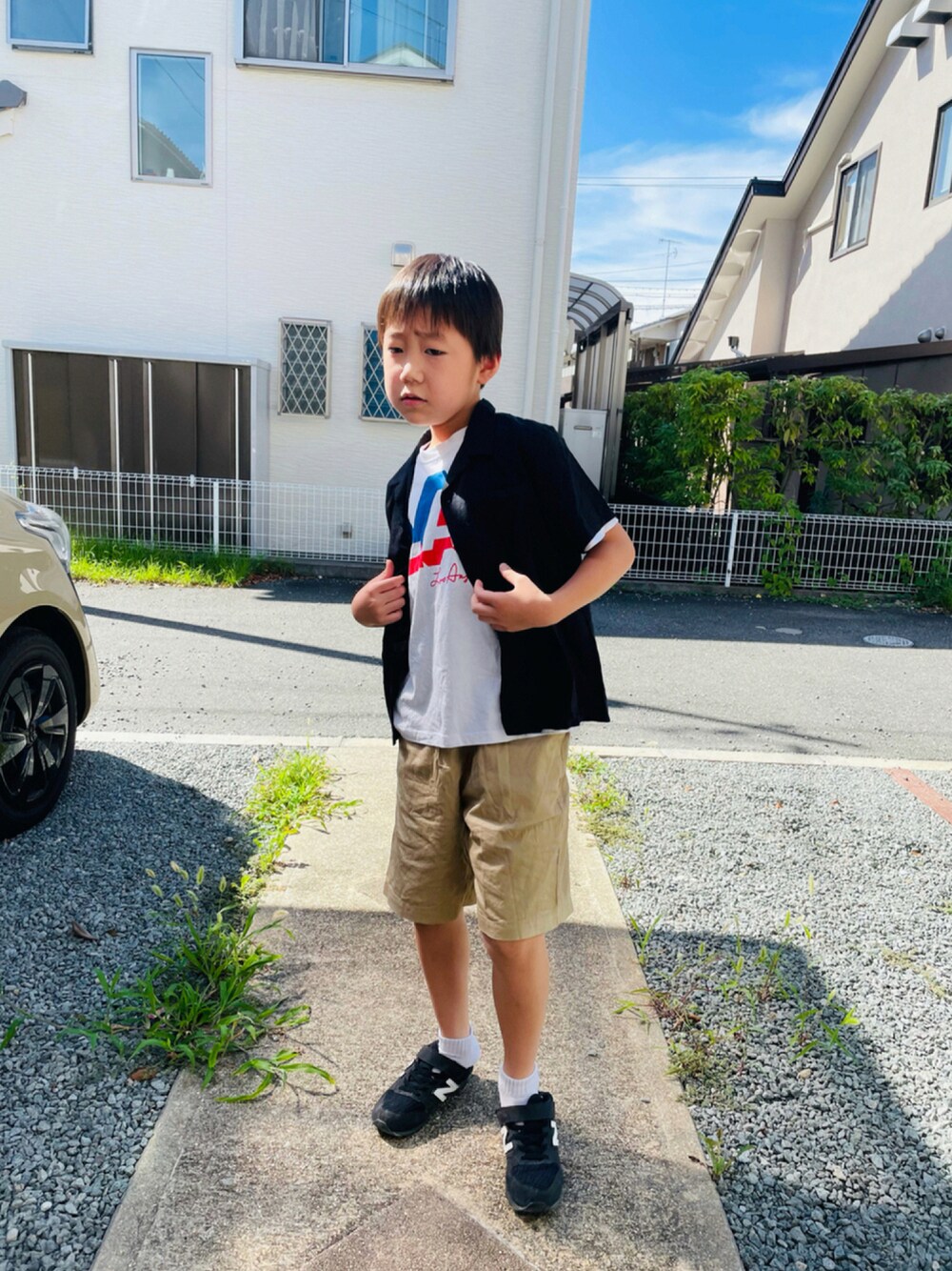 のぞいてくださってありがとうございまーす❤️ #オープンカラーシャツ あたしはかなり好きなアイテムですが、そうたは基本シャツ好きじゃなくて😅 あんまり着ないままピッタリサイズになってるー💨💨💨 ほんで…なんちゅう顔しとんねーん🤣🤣🤣 今日は久しぶりに楽しみな日ー🎵 るんるん💗