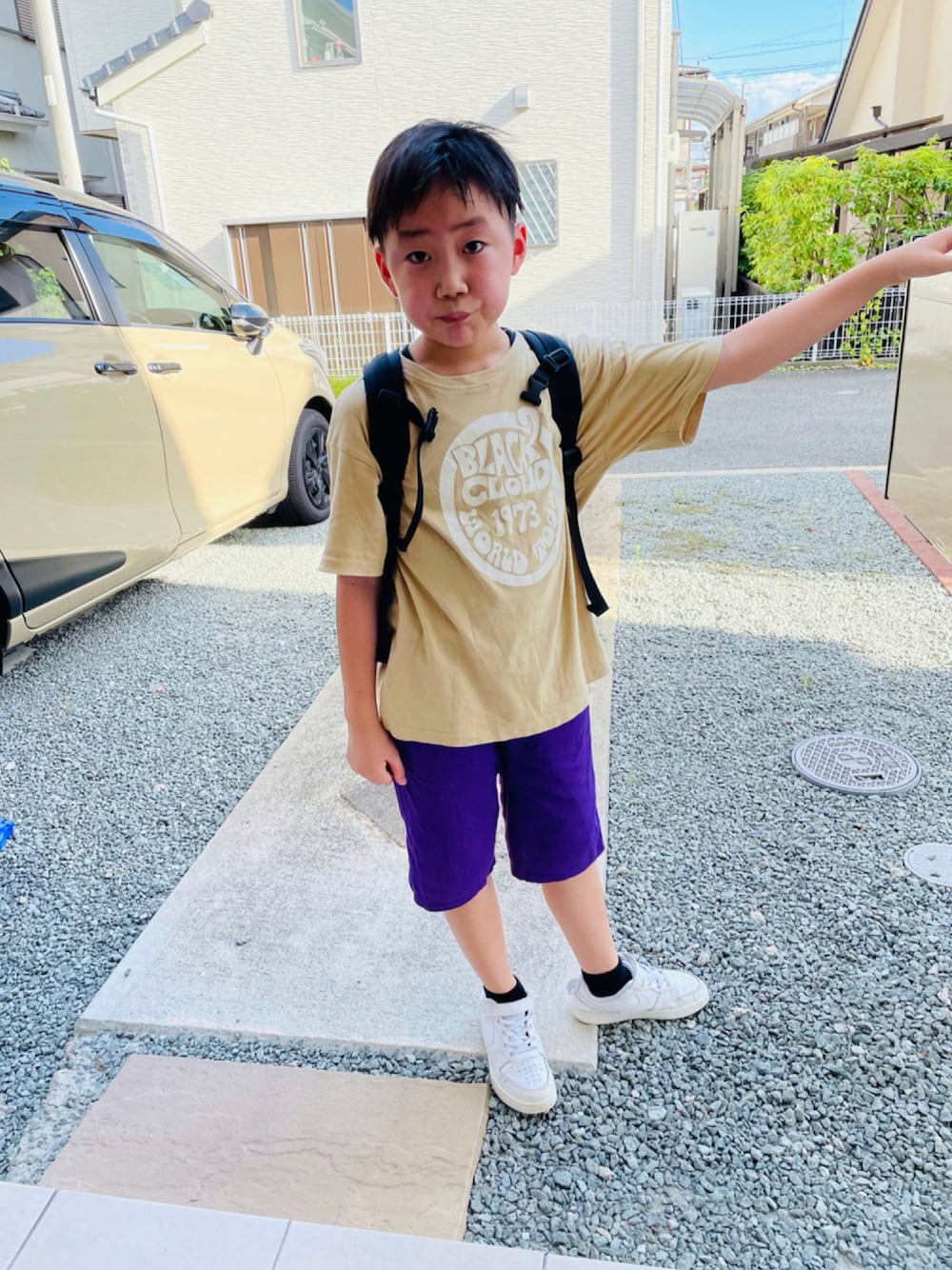 のぞいてくださってありがとうございまーす❤️ #スニーカー 汗だくそうた🤣笑 相変わらず半袖半パンなのに汗だくなそうた… 夏が終わりません💨 でもなんとなくさつまいも色にしてみました🍠笑