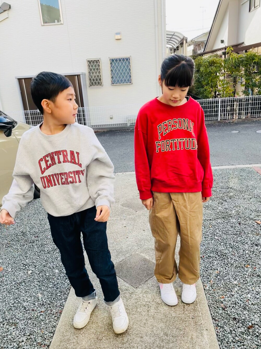 emi_mitoのスウェット「カレッジロゴジャンボスウェット(80~140cm)」を使ったコーディネート