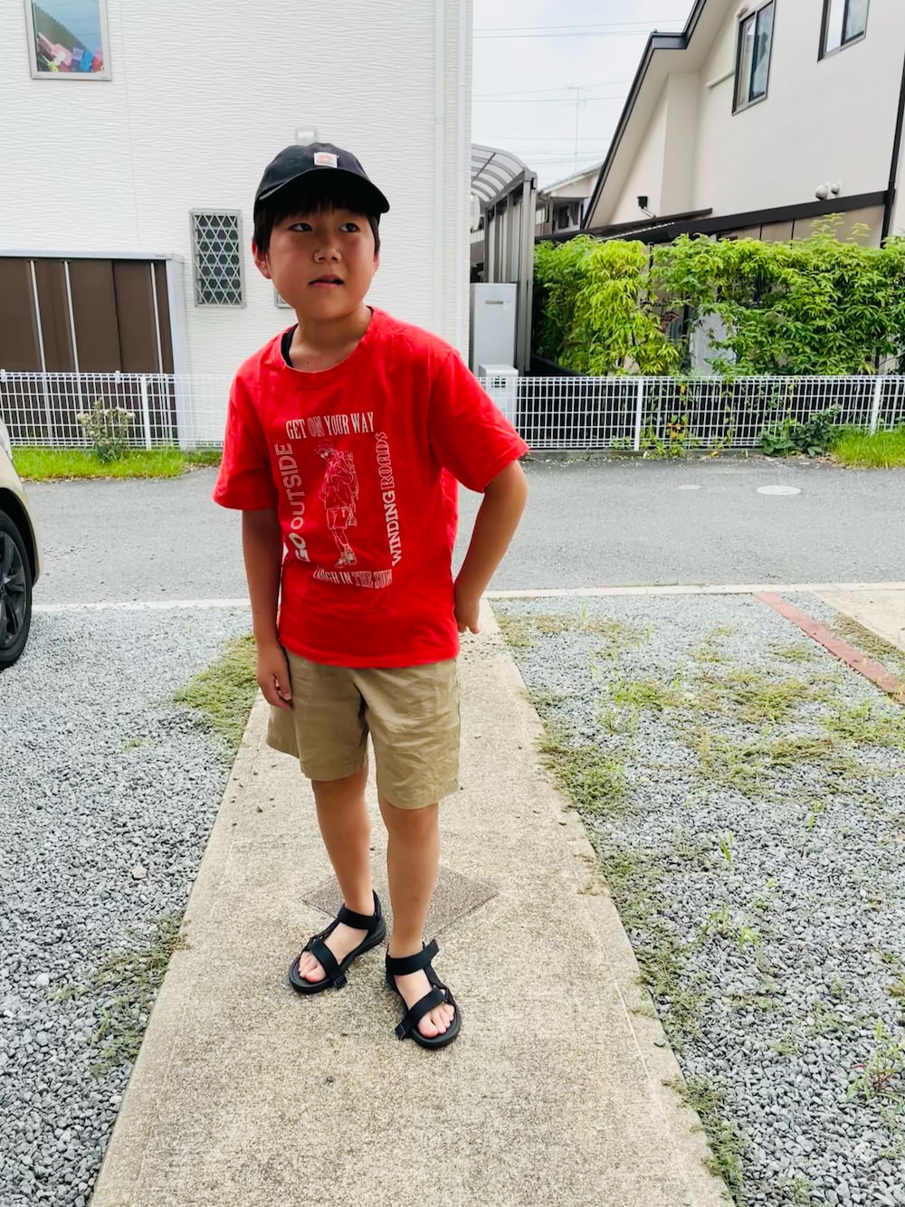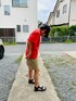 のぞいてくださってありがとうございまーす❤️ #カジュアルコーデ 男子って…いろいろできずにだいたいこの感じです🤣笑 Tシャツ短パンが制服のようになってます👍 赤にベージュも大好きな組み合わせ❤️ 暑い…毎日毎日暑い…もう溶けそうです😱
