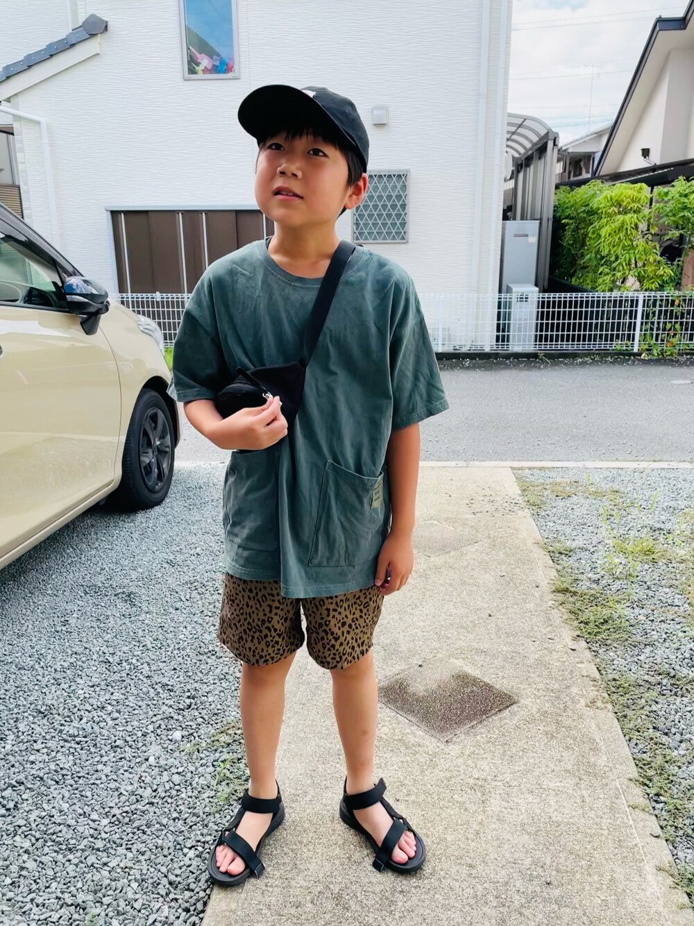 のぞいてくださってありがとうございまーす❤️ #キャップ このコーデ好きだったー❤️笑 絶妙なみどりとレオパの組み合わせがかわいいやつ🐆💚 男子は基本Tシャツ半パンだからそれ以上になかなかならないけど😭 それでもかわいい組み合わせはテンション上がりますね👍✨