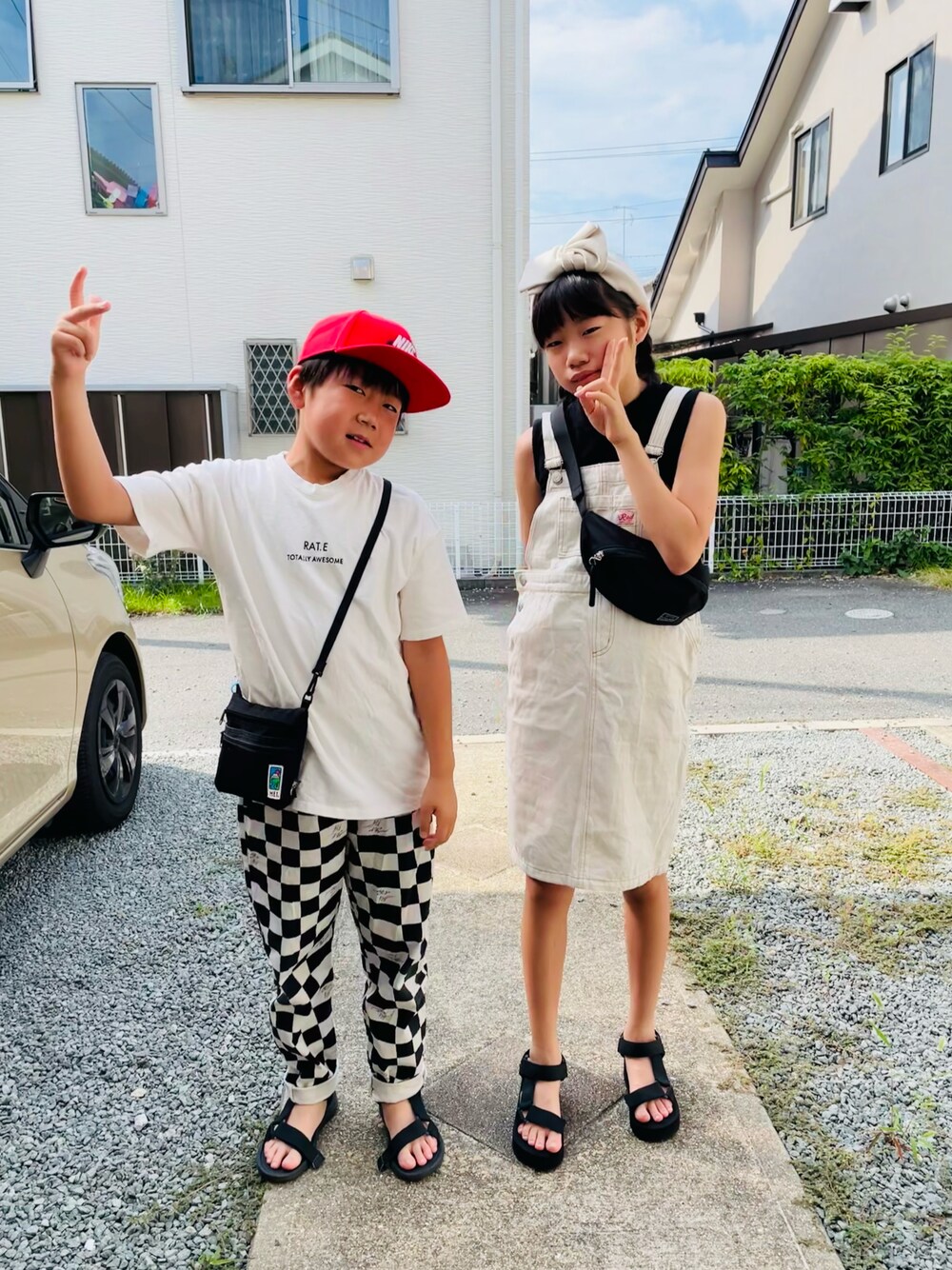 のぞいてくださってありがとうございまーす❤️ #シンプルコーデ なんだかモノトーンな2人です🤍🖤 夏もモノトーンが好き❤️ 夏休み…そろそろ半分🍀 いろいろ気をつけながら出来るだけ楽しく過ごしたいよねー😆