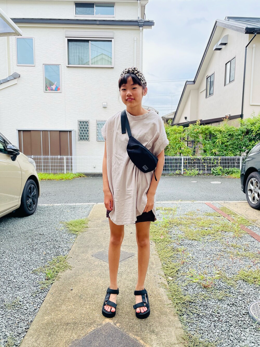 のぞいてくださってありがとうございまーす❤️ #ビッグシルエット 去年のSALEで買ったグローバルワークさんのトップス💗 形もゆるっと感もかわいいですー😍💕 これまたずーっと履いてるブランシェスさんの短パン合わせが好きでした❤️ ヘアバンドはhokkoriko🐆💕 夏休みの名残🎵
