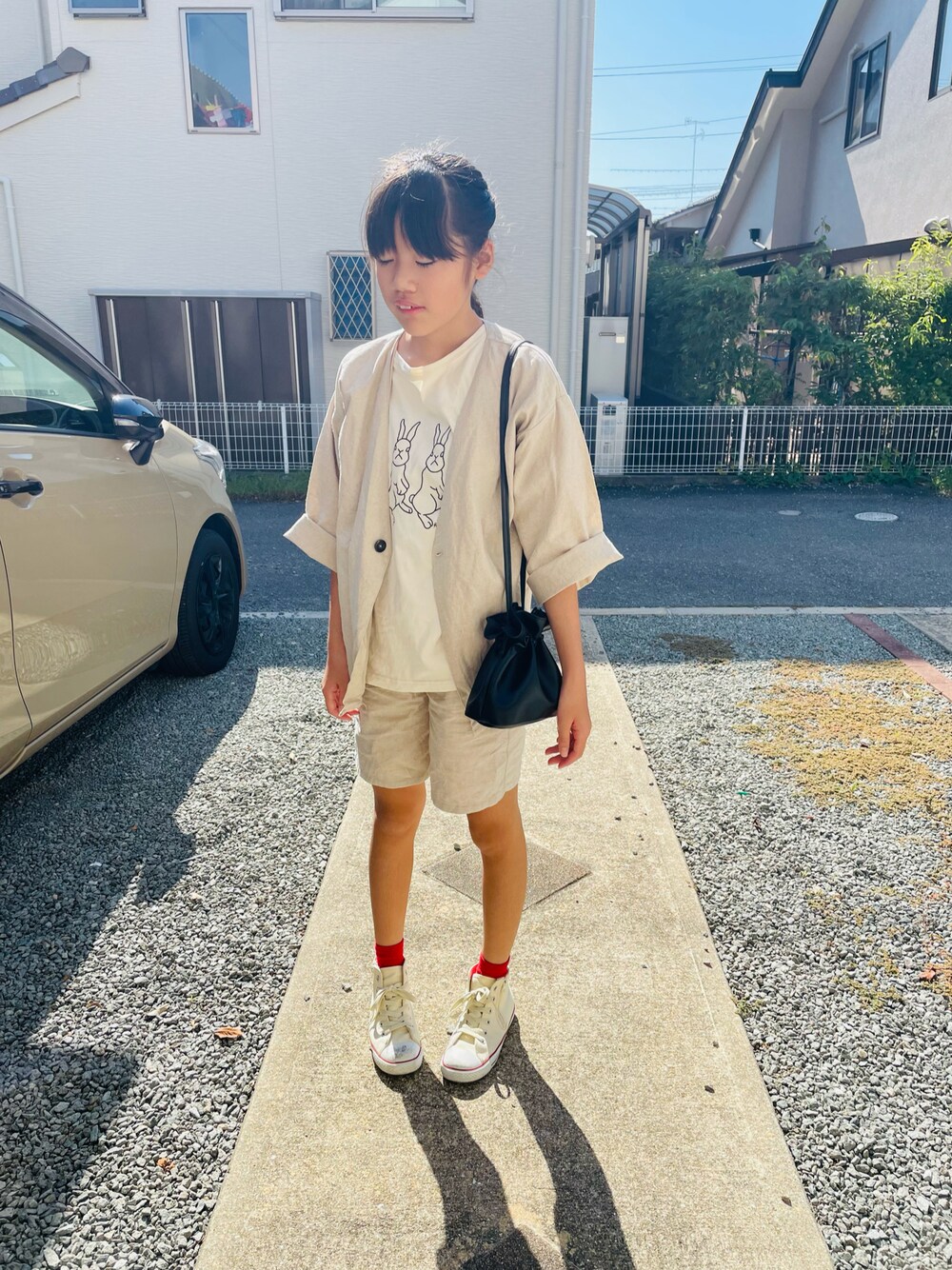 のぞいてくださってありがとうございまーす❤️ #ワントーンコーデ 大好きなhokkorikoのセットアップでベージュワントーン❤️ こういうのは季節の変わり目に着やすい✨ ほんでこのセットアップはほんとかわいくて😍💕 これもまた長いことお世話になっております😆 中のうさぎちゃんTシャツも巾着バッグも赤い靴下もコンバースもヘビロテさんたち💗 お姉さんとお出かけした日🍀 お昼に揚げたて食べられる天ぷら屋さんに行きました🎵 あやかの食べ方がなんか好きな母🤣 手を添えながら食べます❤️
