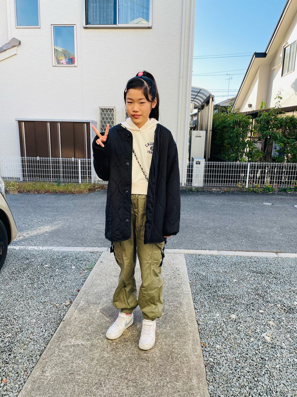 のぞいてくださってありがとうございまーす❤️ #キルティング いつかの通学すたーいる🎵 トップスはGUのレディース、パンツもGUです😆💕 なんだかJSな日❤️ キルティングは去年買ったグローバルワークさんのくっついてるやつの中だけ👍 ↑言い方🤣