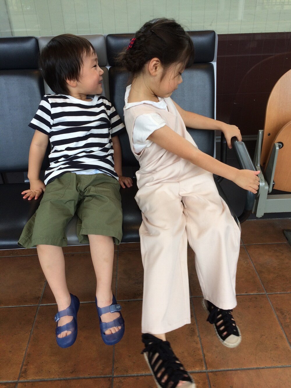 久しぶりに電車に乗って梅田に行きました。 大学の友だちと久々の再会♡ あー楽しかった♪(´ε` ) あたしが今日はボーダーTシャツにベージュのサロペットやったので微妙に親子リンクでした(笑)