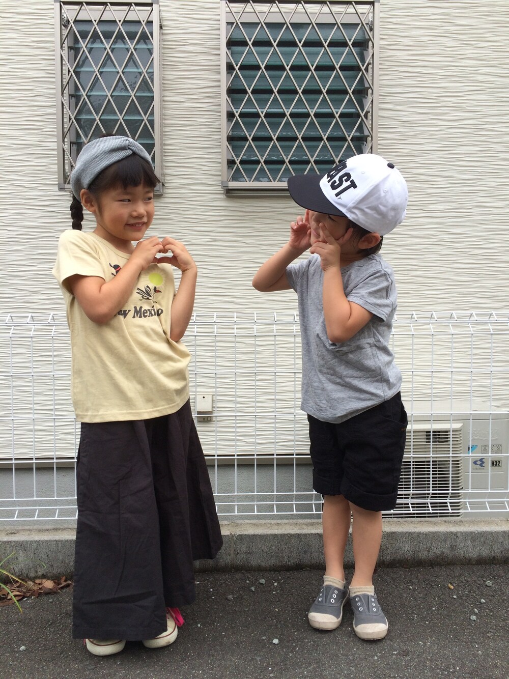 お姉さんの顔…💦 この2人なんか好きー♡ ワイドパンツもどうかなーと思ったけど動きやすそうやし風も通るしよかった♪(´ε` ) 弟さんモノトーンすぎたかー!?笑