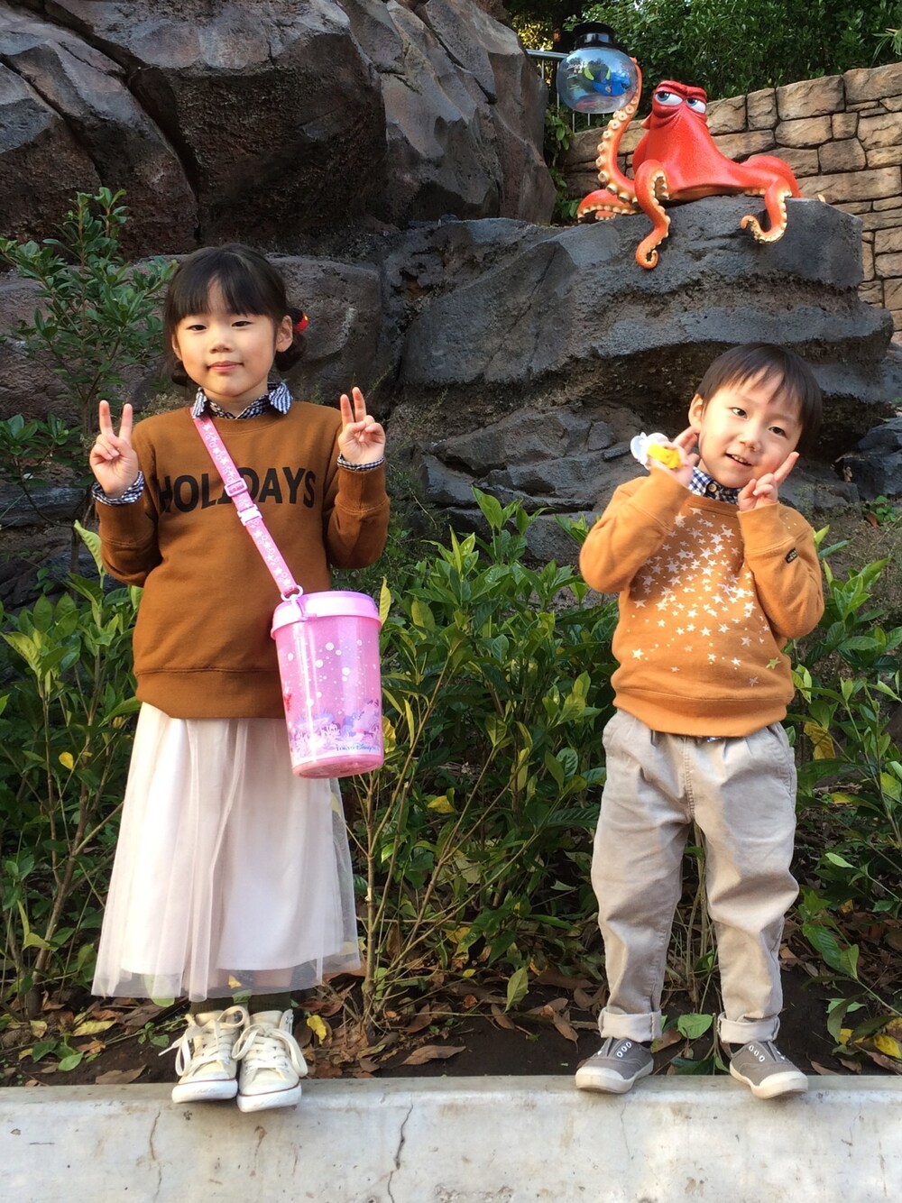 のぞいてくださってありがとうございまーす♪(´ε` ) 夢の国に行ってまいりました♡ 1日目はランド✨ 2人とも目一杯楽しみました(๑>◡<๑) しかもあったかかったー♬ 茶色×ブロックチェックシャツ×白でリンクしました♡