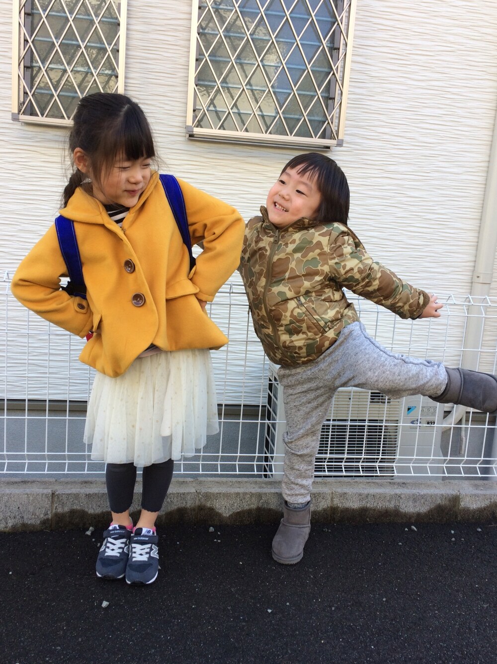 のぞいてくださってありがとうございまーす💕 なんのポーズなのか… 楽しそうで何より笑 お姉さんのコート形がかわいくて大好き♡ 男の子のグレーのスウェットパンツ、なんかかわいくて好きー♡