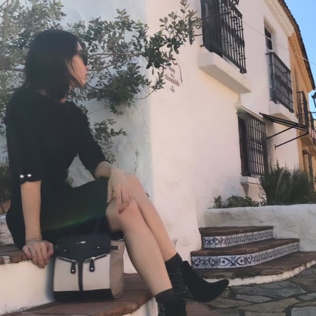 平日スーツ、休日ジユウ! ほぼ黒、ベージュ、赤でできてる。