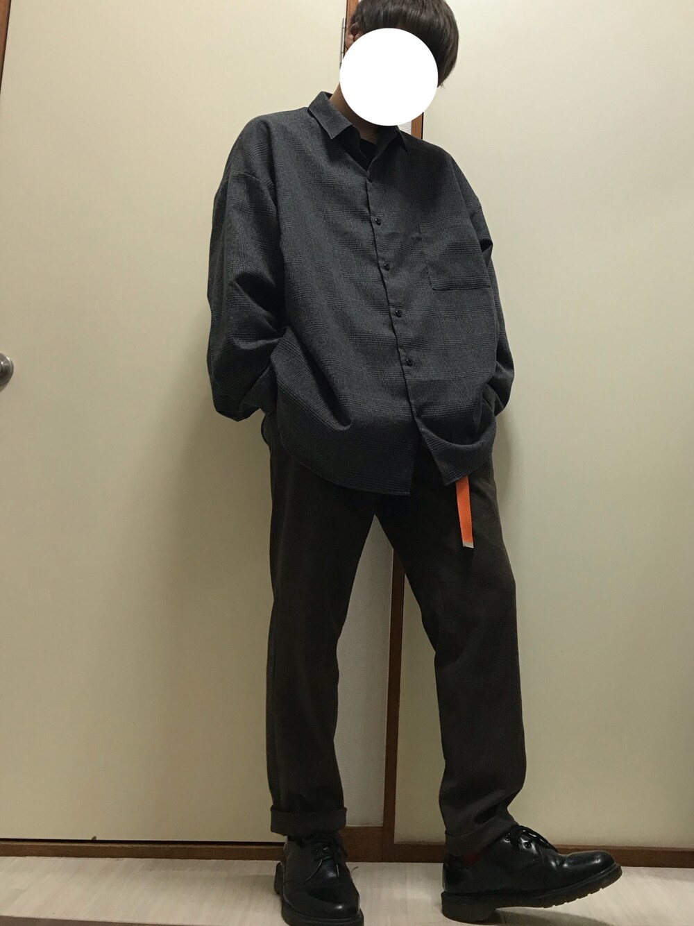 オーバーサイズのシャツにブラウンのパンツを合わせました😎
