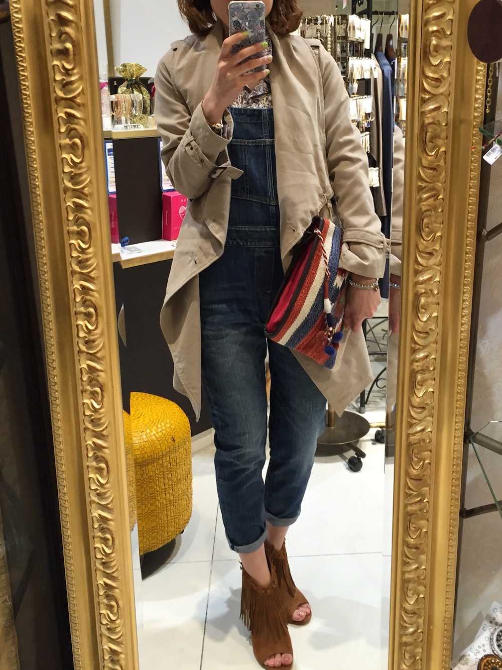 こんばんは♡ ピックアップタグのトレンチコートを使ってのコーディネートです。 かっちりしてるのは苦手なのでデニムのサロペットを合わせてカジュアルダウンさせました! そして、この春のトレンド!ボヘミアンテイストをプラスするのに ネイティブ柄のクラッチバッグとフリンジブーティをチョイスしてみました。 このトレンチコートも落ち感がある素材でゆるく着られるのでお気に入りです♡ 早くもっと暖かくならないかなぁ〜〜