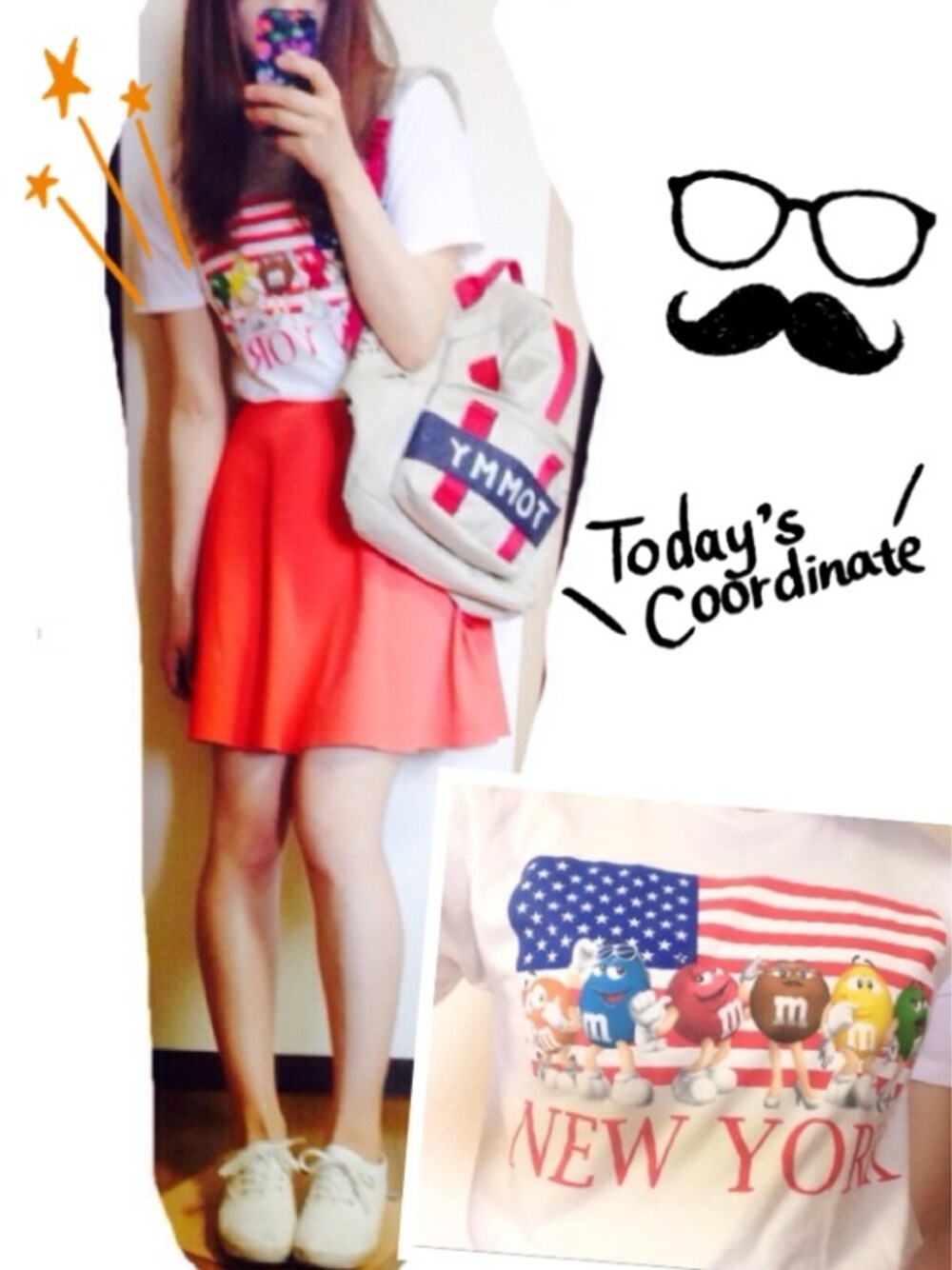 カジュアルコーデ🌻 これからバスケしてきまーす。 NYで購入したお気に入りのTシャツ💓 アメリカ仕様でオーバーサイズなのでスカートにin☆ 閲覧&SAVE、コメントありがとうございます(*^_^*)どれも凄い嬉しいです🙇✨ skirt:tocco backpack:tommy socks:UNIQLO shoes:GU