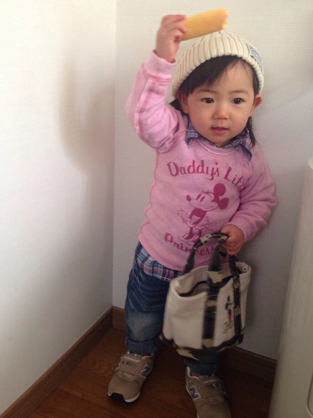 ピンクのトレーナーは実は頂き物のロンパース。かわいくて気に入っていたのにあんまり着ないうちにサイズアウトしてしまったので、下のパッチン部分を切ってトレーナーにリメイク✌️春までなら着れそうかな。