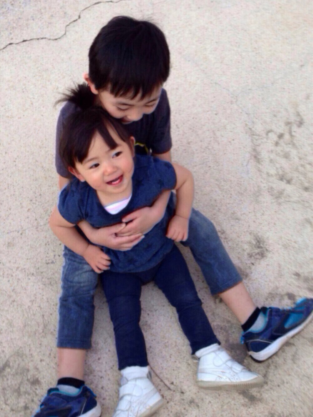 今日は暑かったですねー💦まさか真冬に半袖で遊ぶ事になるとは😳兄と一緒に滑り台を滑って大喜び💕酷い格好になってますが… 兄のパンツはデニムプリントパンツで柔らかくて動きやすいので外遊びにピッタリ。サイズが小さくなって7部丈になってしまってます💦
