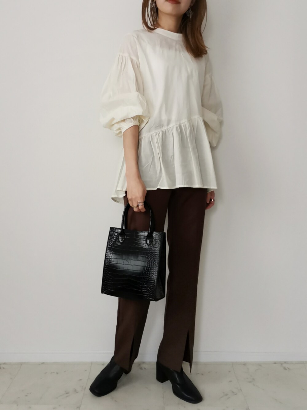 お気に入りのプチプラトップスさん。 ➭ DHOLIC スリットスラックスパンツ これほんとおすすめのひとつ☻ スリットあるから脚長く見えるし、動きやすいし。 薄手だからこれからの季節にぴったりです! ➭ reca ペプラムブラウス トップ画でも着てるrecaのブラウス🙌 ほんと形がかわいくてかわいくて。 袖のボリュームもたまらんのです。 袖にゴムが入ってるからママさんにもおすすめですよ ☝︎ˊ˗ ➭ florist 縦長バケツ型クロコ調バッグ どんなスタイルにも合っちゃうバッグ👜ˊ˗ カジュアルにもきれいめにも合います ✌︎ ᴛʜᴀɴᴋ ʏᴏᴜ sᴏ ᴍᴜᴄʜ . ───────────────── ɪɴsᴛᴀɢʀᴀᴍ / @𝚑𝚊𝚕𝚝𝚘𝚐𝚘_𝚜𝚝𝚢𝚕𝚎 ───────────────── #pr