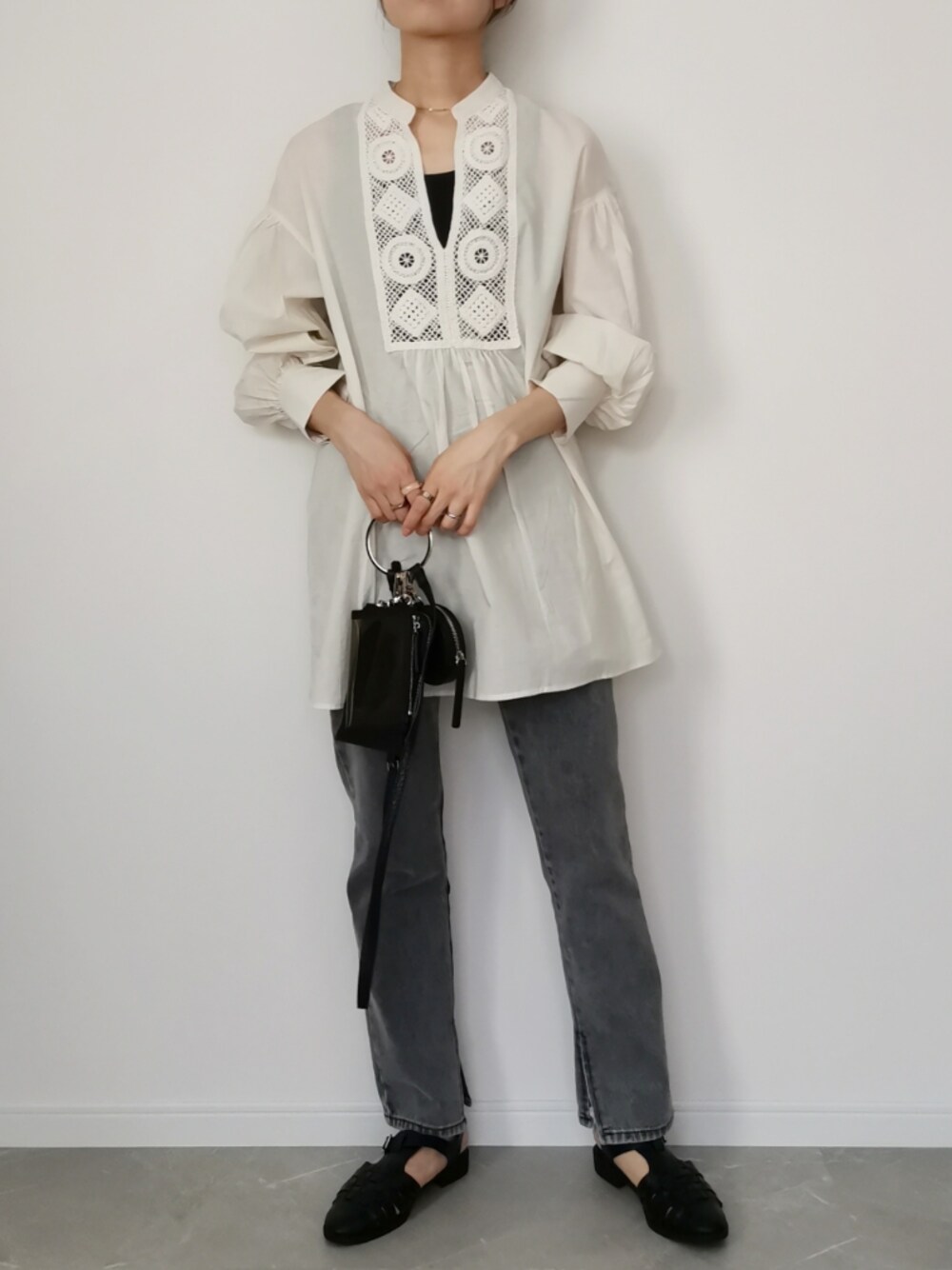 モノトーンでも可愛いブラウス🦨🦝🐼 ➭ KBF クロシェドッキングブラウス 胸元のクロシェ編みがとっても素敵なブラウス。 程よいシアー感があるから今の季節からでも着れて嬉しい🙌 ───────────────── Instagram @haltogo_style #pr