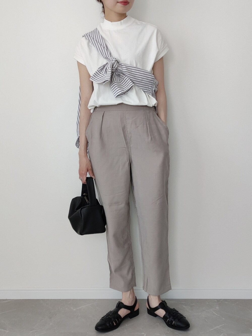 HALのスラックス「[接触冷感機能付き]レーヨン混タックテーパードパンツ」を使ったコーディネート