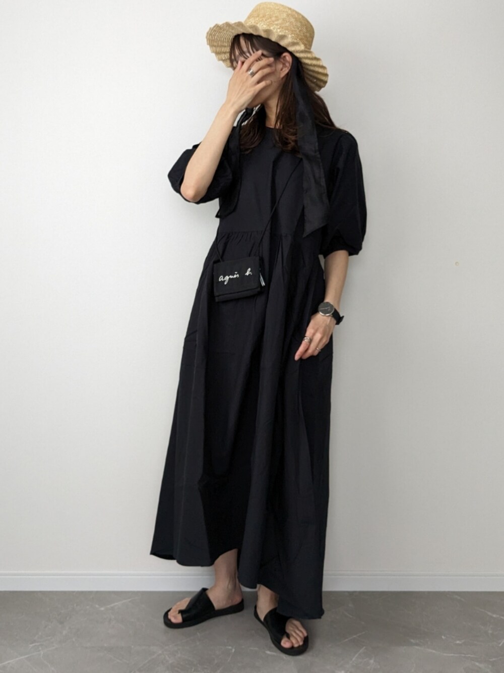 ANGIE コットンティアードワンピース デザインが2タイプある黒ワンピース ふんわり可愛いシルエット👗 カンカン帽との相性抜群👒 インスタ haltogo_style #pr