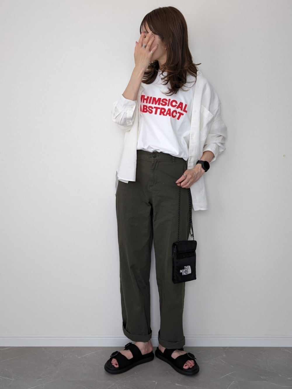 HALのTシャツ/カットソー「フロッキープリント / 箔 メタリック プリント ロゴTシャツ(半袖)」を使ったコーディネート