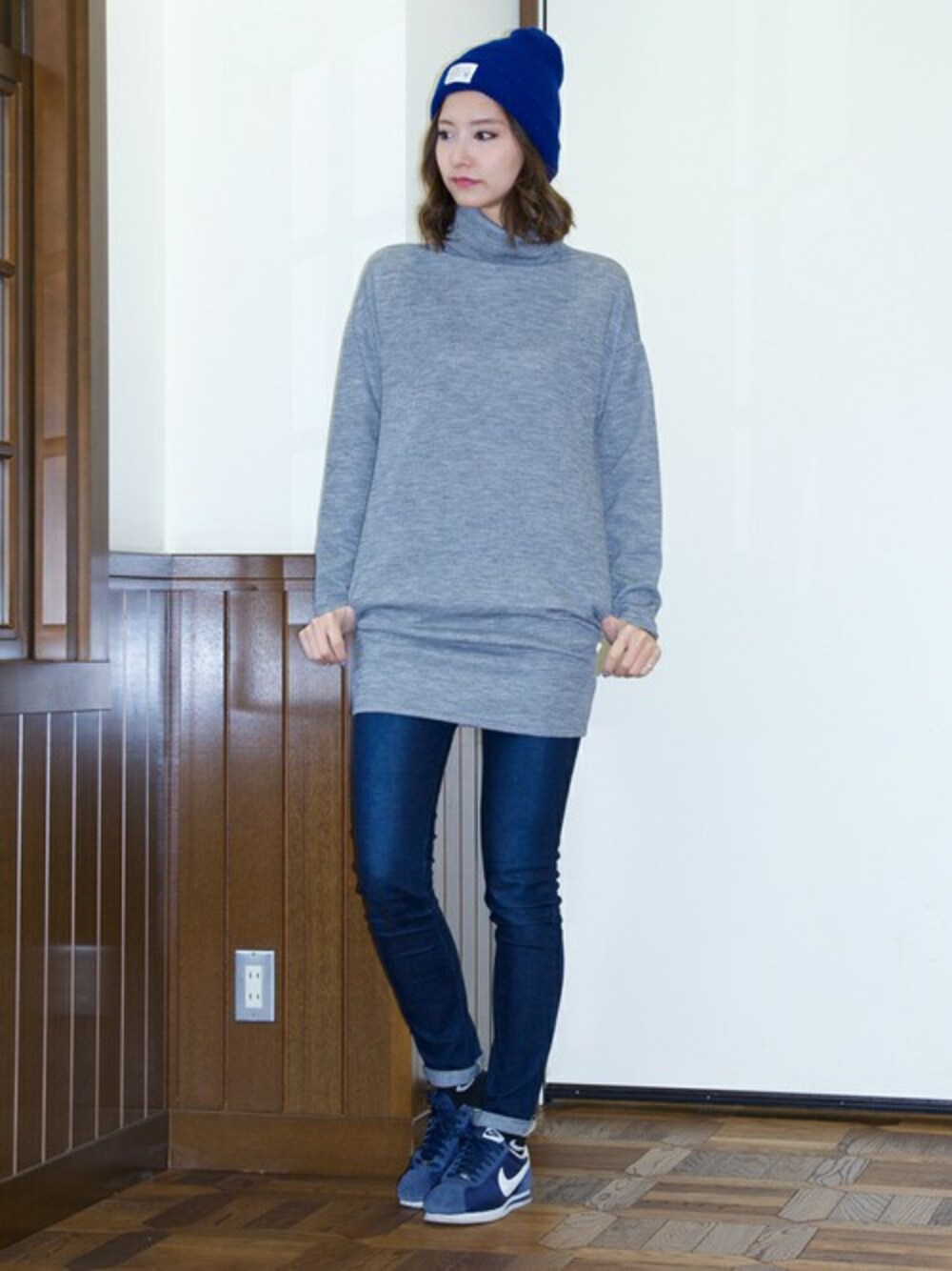 今日はシンプルにスプリングニットを中心にニット帽とジーンズでカジュアルコーデ。