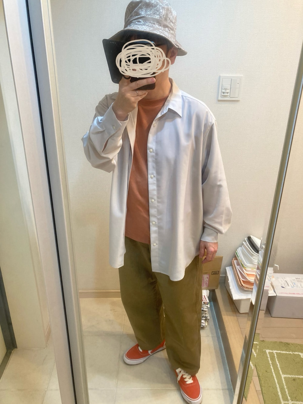 #春コーデ #休日コーデ #大人カジュアル #バケットハット #シアーオーバーサイズシャツ #tシャツ #チノパン #スニーカー #プチプラコーデ #gumiharayasuhiro #gu #uniqlou