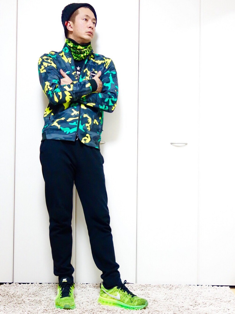 第48回wear コーディネート✨ 目がチカチカしそうな迷彩コーデ💦 皆様おはようございます 大阪は快晴の気持ちいい朝です☀️ 今日はブリストルのこれでもかと目立ってしまう迷彩のトップスをメインにコーディネート✨ この格好で身を隠そうとしても逆効果になる事間違いなしです😅 首元は毎度のbuff❗️ パンツも毎度のチャオパ❗️ シューズも毎度のフライニットグリーン❗️ それでは今日も気軽に絡んでくださ〜い😄