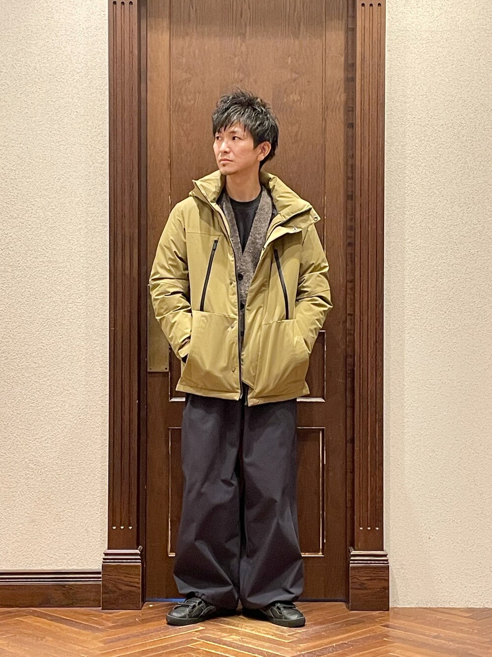 outer...nano universe knit...nano universe pants...YLEVE shoes...asics