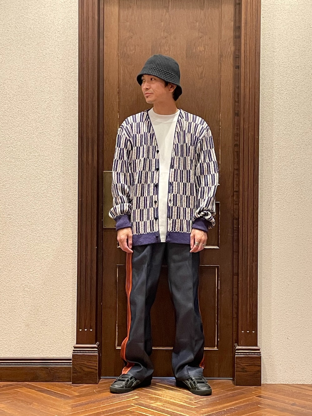 uedamitsuruのハット「RACAL/別注Knit Bucket hat」を使ったコーディネート