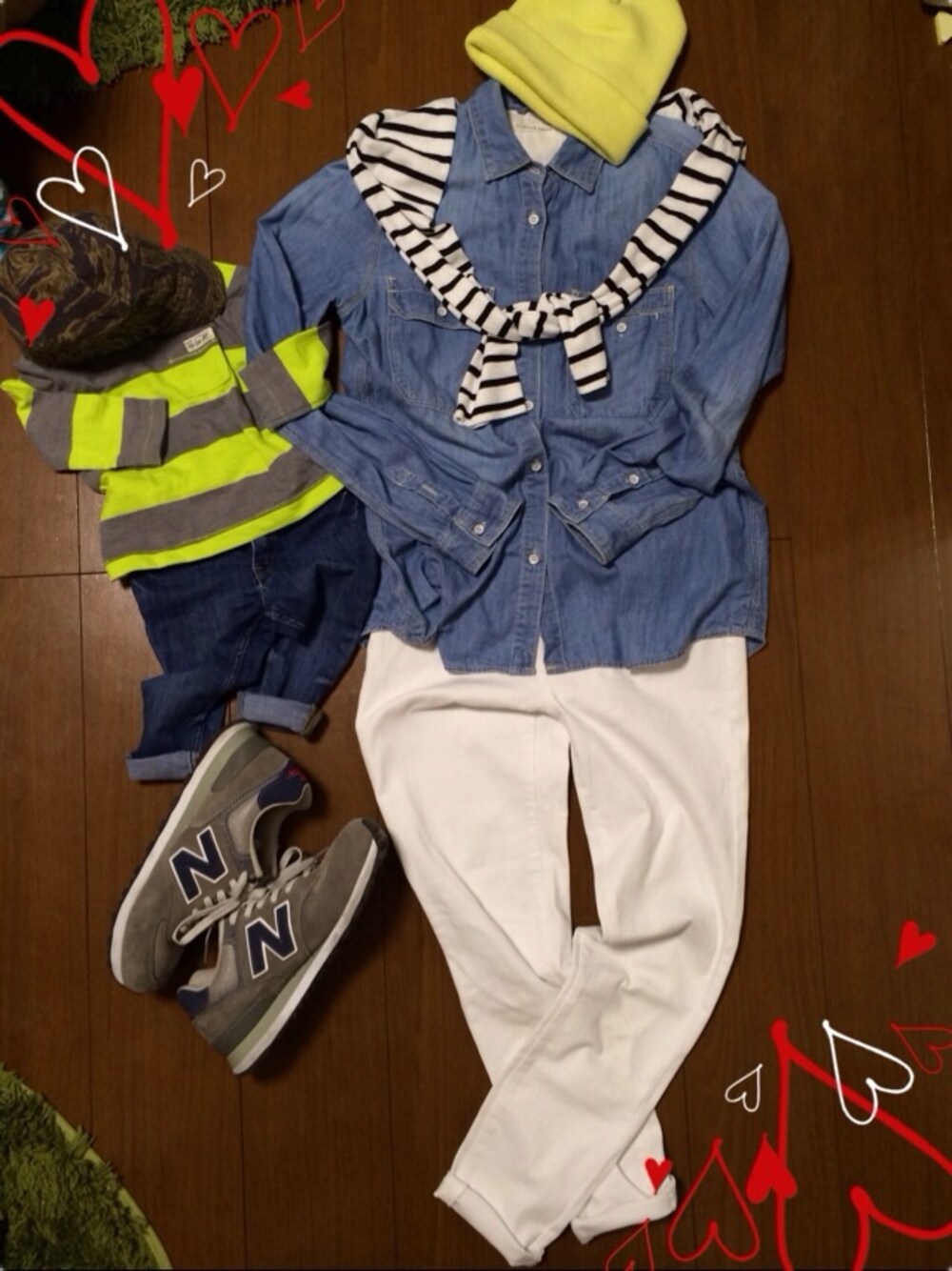 息子とお花見コーデ♡ 早く歩けるようになるといいなー( ^ω^ ) ニット帽...RETRO GIRL デニムシャツ...LOWRYS FARM ボーダーTシャツ...GU スキニー...UNIQLO CAP...JUNK STORE Tシャツ...GAP デニム...H&M