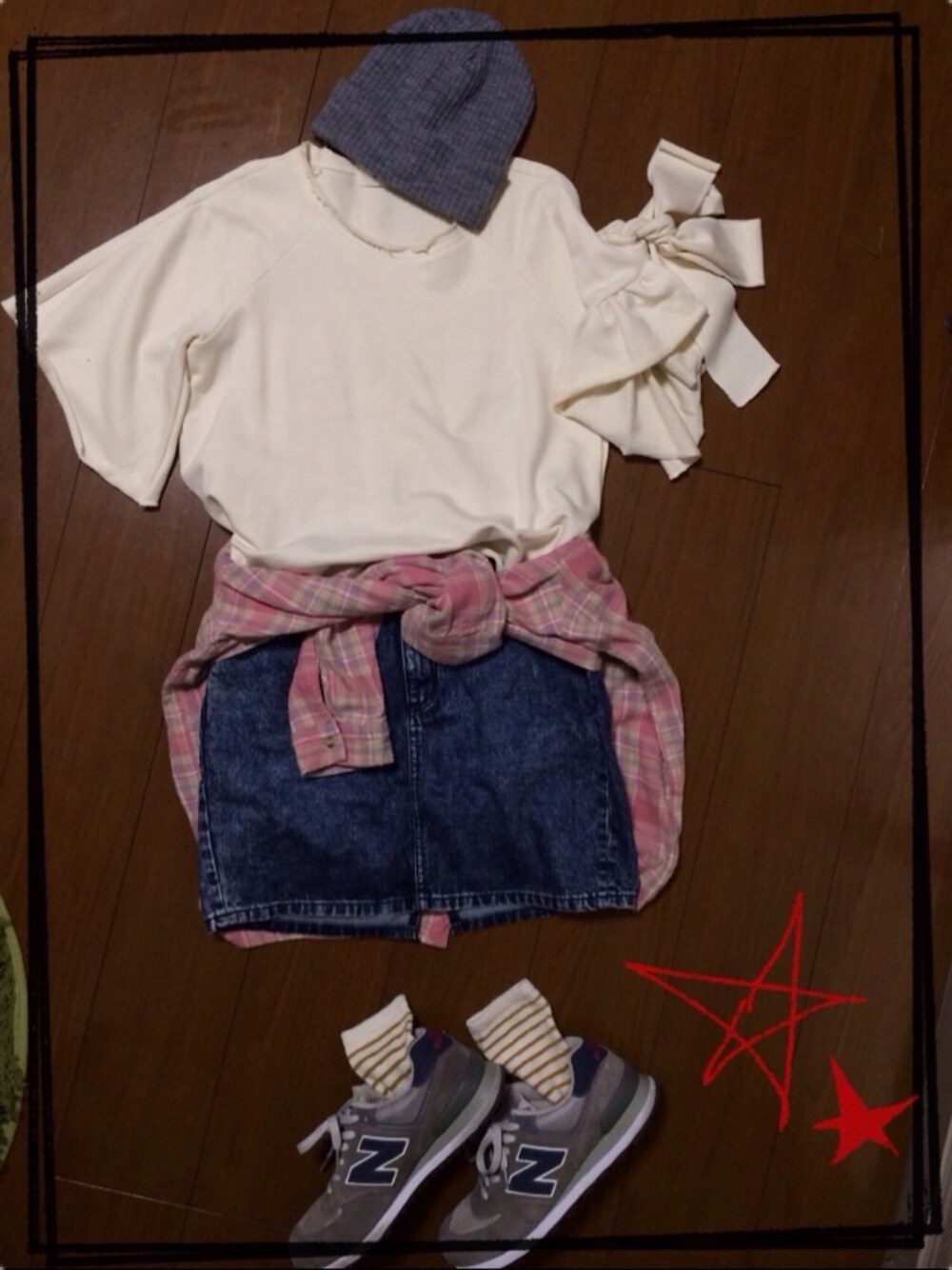ニット帽...LOWRYS FARM トップス...COCA チェックシャツ...LOWRYS FARM スカート...LOWRYS FARM 気づけば今日はほぼローリーズ。