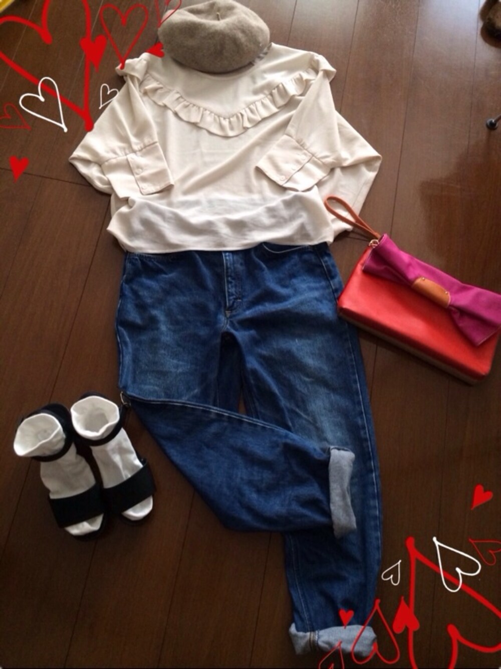 mittyのシャツ/ブラウス「フリル切替プルオーバー」を使ったコーディネート