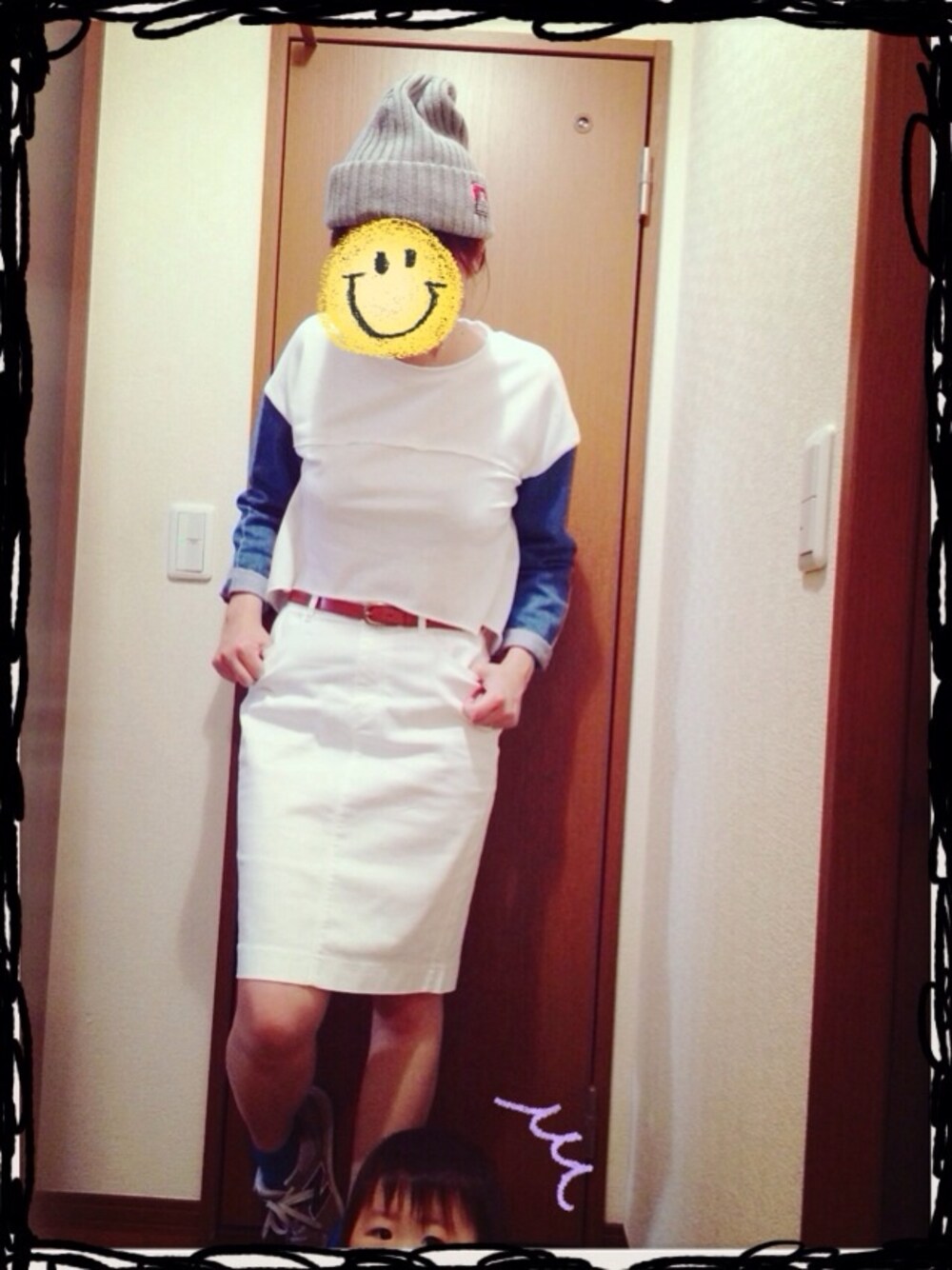 トップス...韓国の スカート...UNIQLO トップスは袖がデニムでお気に入り♡ これから幕張フリマ‼︎ 何か良いのあるといいな〜