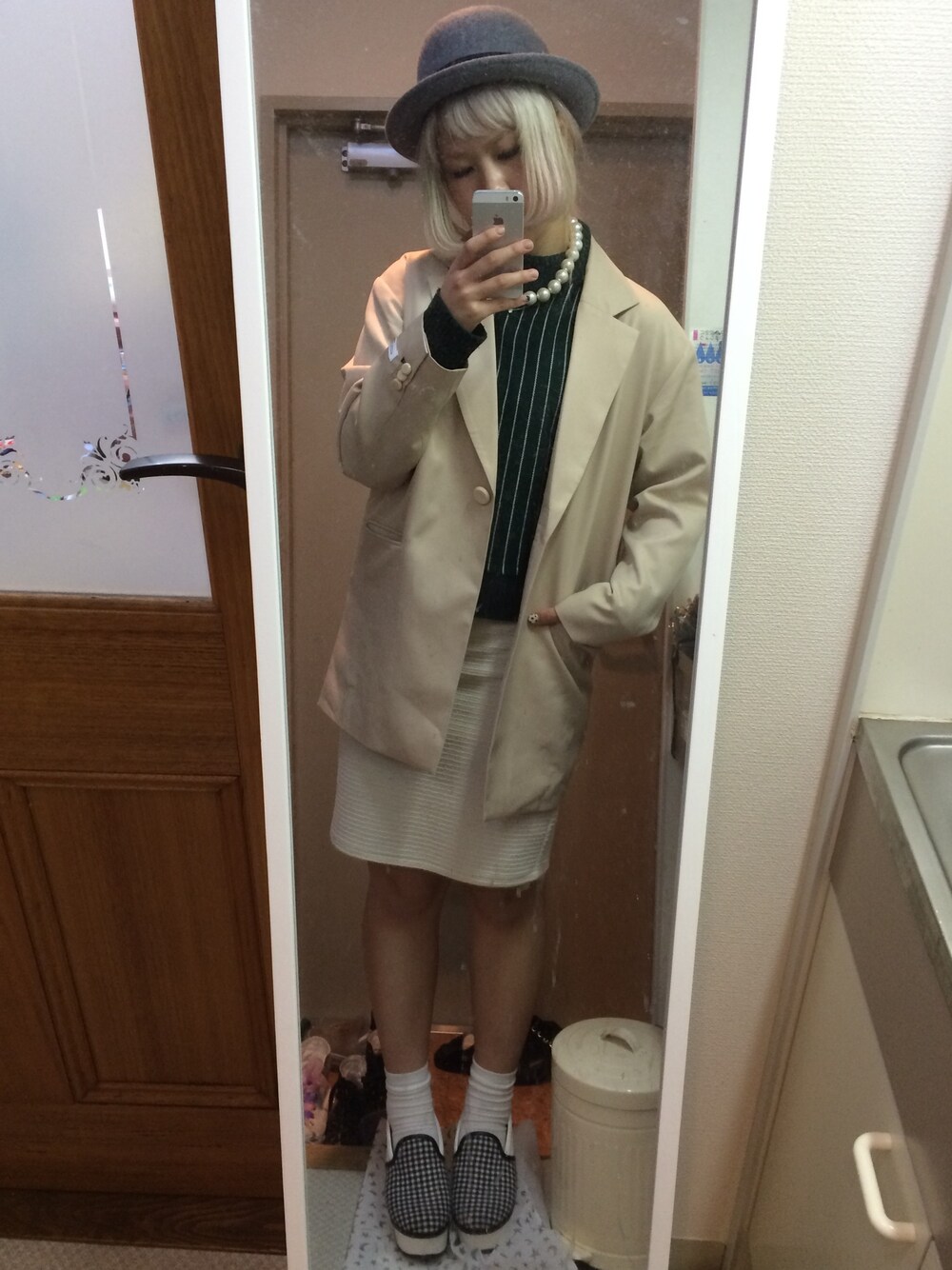 Minaのニット/セーター「【CASUAL】ストライプハイネックニット」を使ったコーディネート