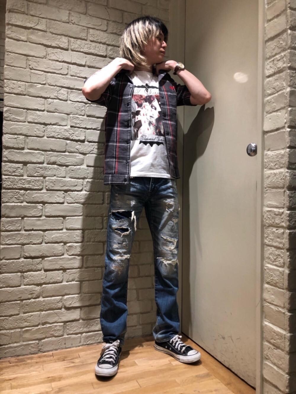Mitsu(HYSTERIC GLAMOUR横浜ジョイナス店)のTシャツ/カットソー「NIAGARA/I DIED A THOUSAND TIMES pt Tシャツ」を使ったコーディネート