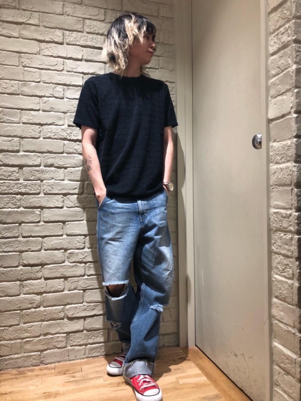 Mitsu(HYSTERIC GLAMOUR横浜ジョイナス店)のTシャツ/カットソー「HYS HYS総柄ジャカード Tシャツ」を使ったコーディネート