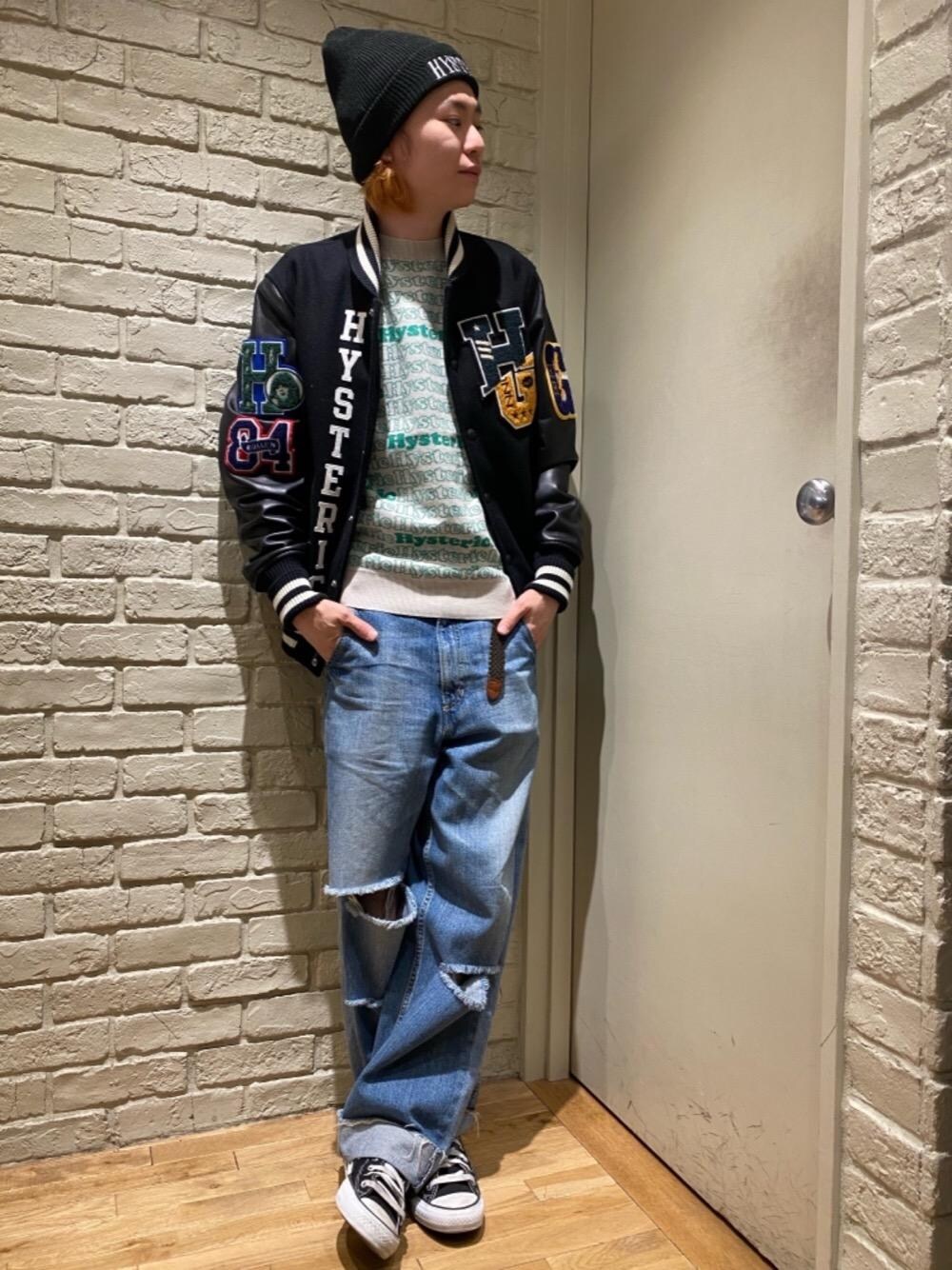 Mitsu(HYSTERIC GLAMOUR横浜ジョイナス店)のニット/セーター「HYSTERIC LOGO総柄ジャカード プルオーバー」を使ったコーディネート