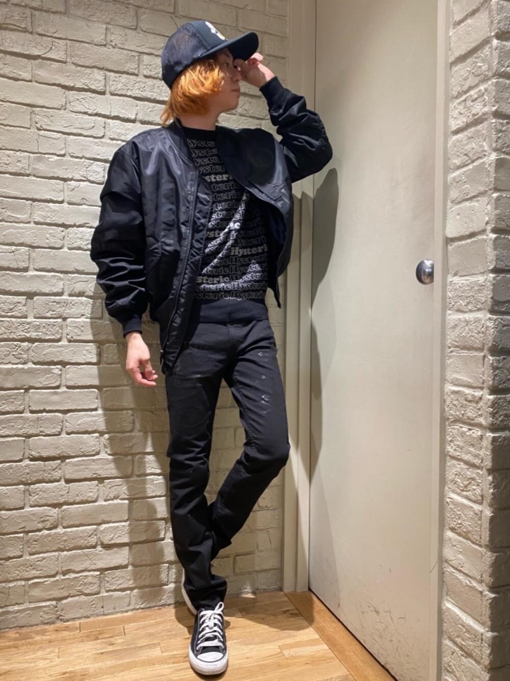 Mitsu(HYSTERIC GLAMOUR横浜ジョイナス店)のニット/セーター「HYSTERIC LOGO総柄ジャカード プルオーバー」を使ったコーディネート