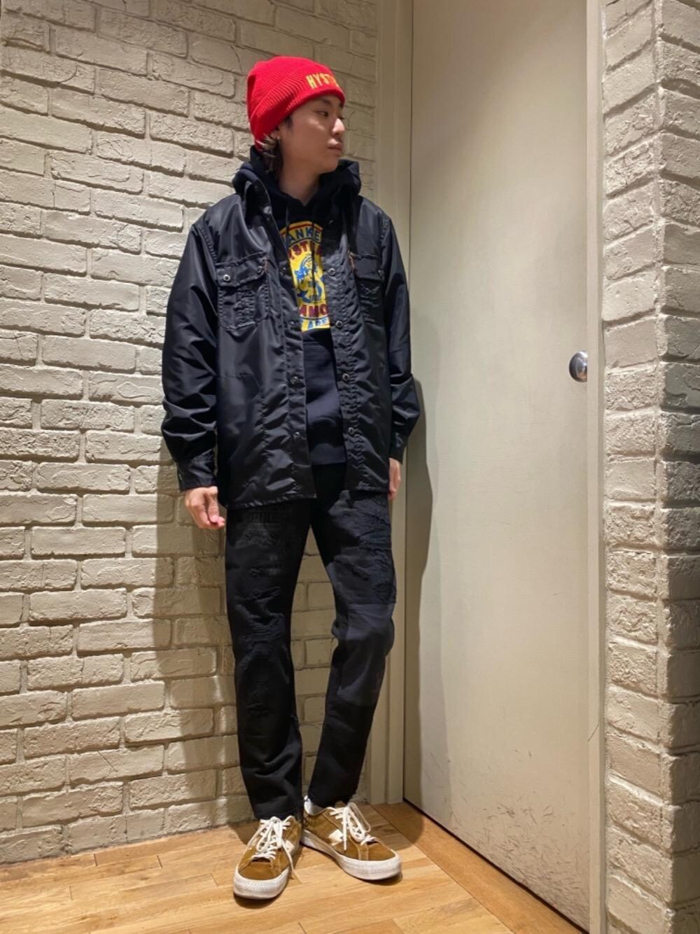Mitsu(HYSTERIC GLAMOUR横浜ジョイナス店)のデニムパンツ「COLLAGE REMAKE加工デニム テーパードパンツ」を使ったコーディネート