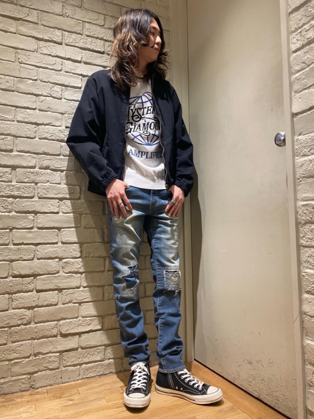 Mitsu(HYSTERIC GLAMOUR横浜ジョイナス店)のデニムパンツ「KPR加工ISKOリメイクスリムデニムパンツ」を使ったコーディネート