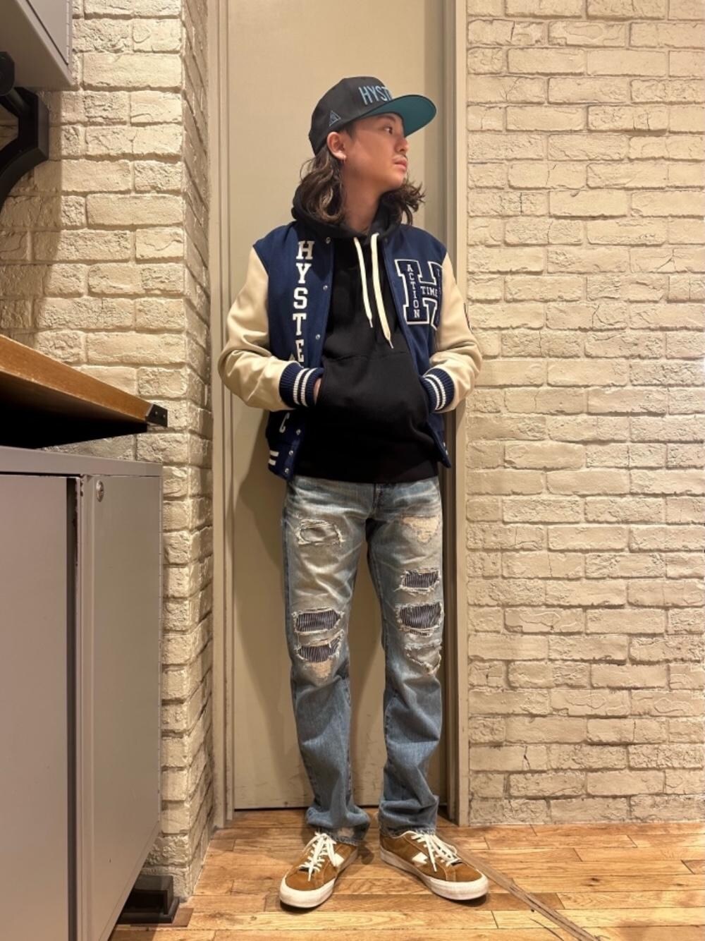 Mitsu(HYSTERIC GLAMOUR横浜ジョイナス店)のキャップ「SOUND&VISION 刺繍キャップ」を使ったコーディネート