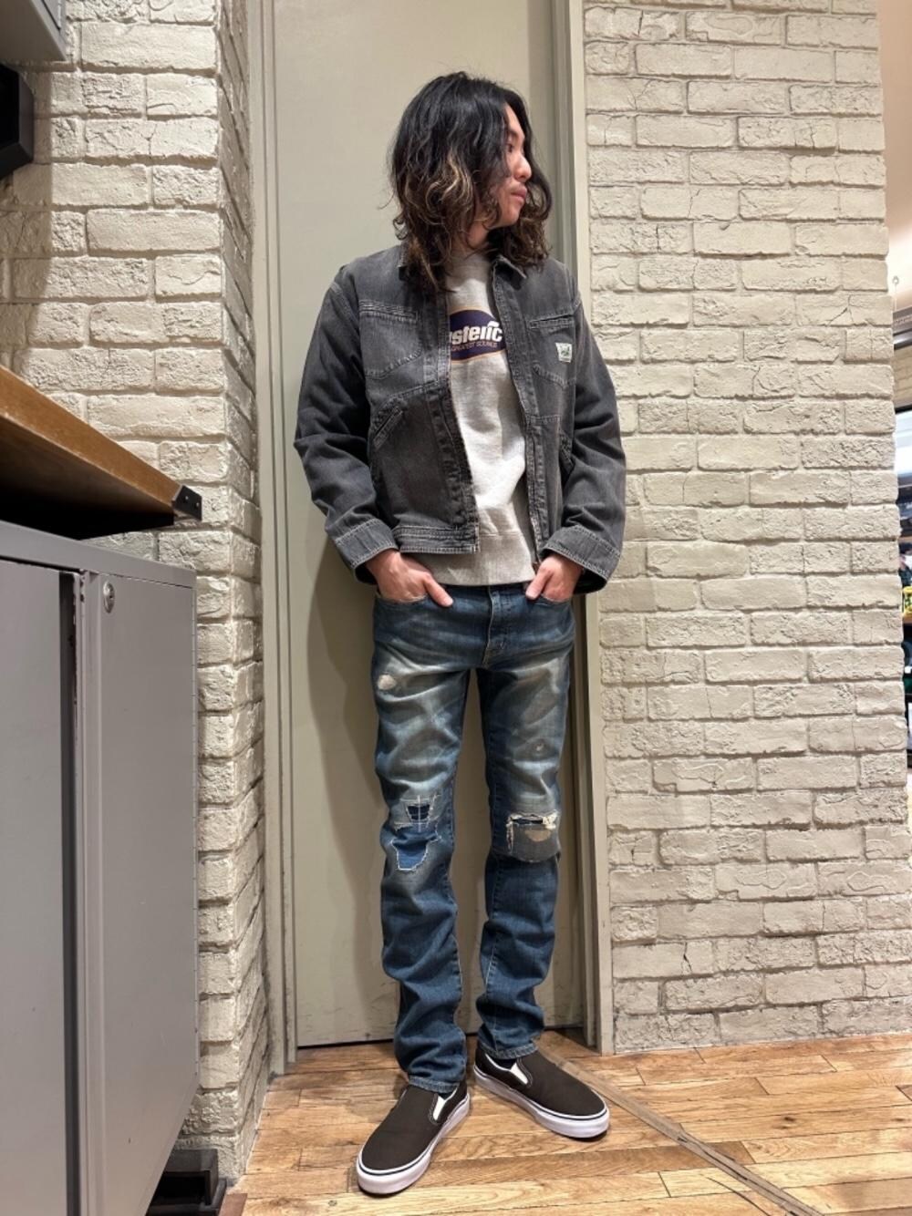 Mitsu(HYSTERIC GLAMOUR横浜ジョイナス店)のデニムパンツ「KPR加工ISKOリメイクスリムデニムパンツ」を使ったコーディネート
