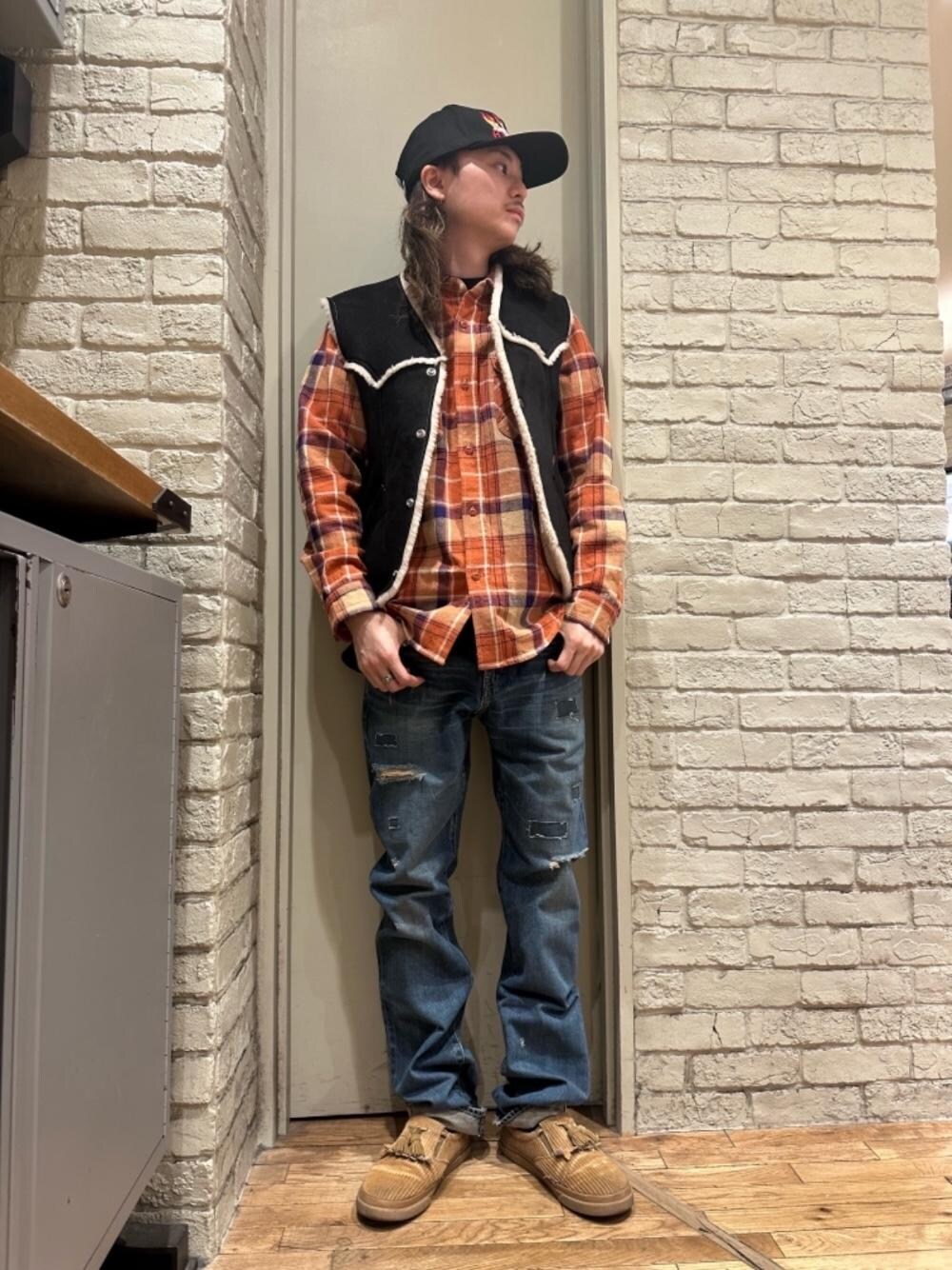 Mitsu(HYSTERIC GLAMOUR横浜ジョイナス店)のデニムパンツ「スクエアウインドウリメイク スリムストレートデニムパンツ」を使ったコーディネート